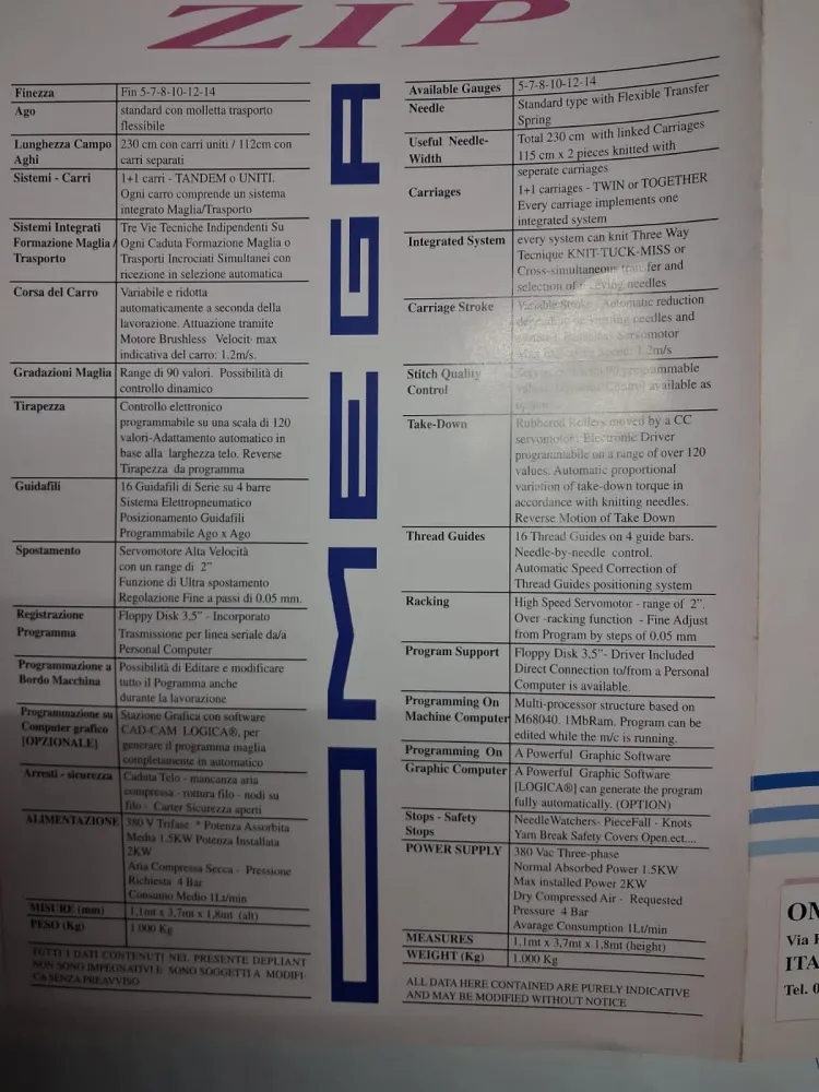 maquina ( tear)  para  fabricar trico,  finura 08  ,  frontura de 2,40 mt  , marca OMEGA  , SEMI NOVA